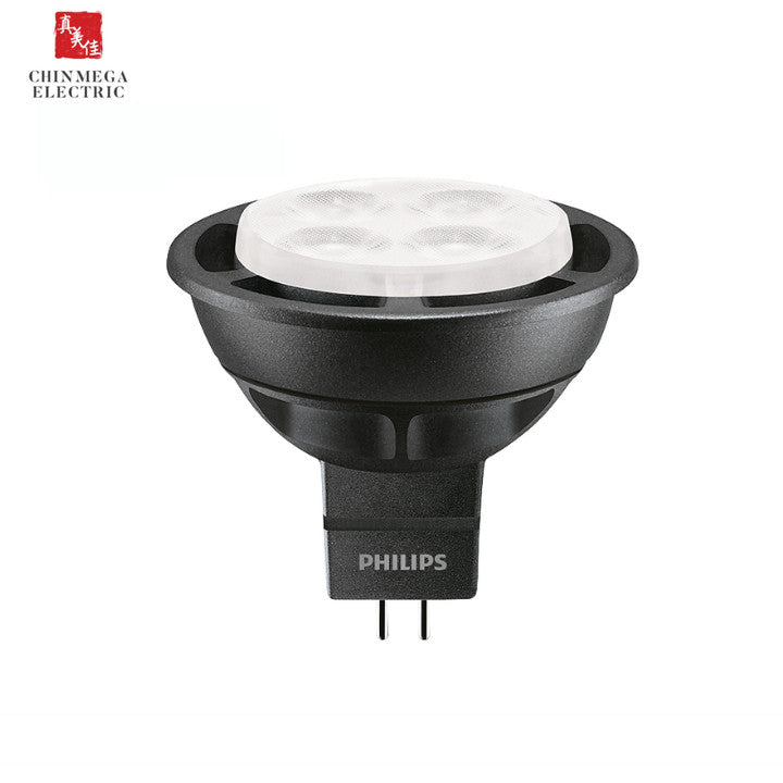 Philips MASTER VALUE MR16 is the series of Low Voltage (12VAC) Halogen MR16 replacements. Not only does it employs Philips' patented solution to guarantee the broadest possible compatibility with standard 12V Halogen electronic transformers. It also delivers beam intensity which is equivalent to the 50W Philips Halogen MR16 lamps. The form-factor of Philips MASTER Value LED MR16 guarantees a 100% form on the back-side of the lamp (exact form with Halogen lamps.)
