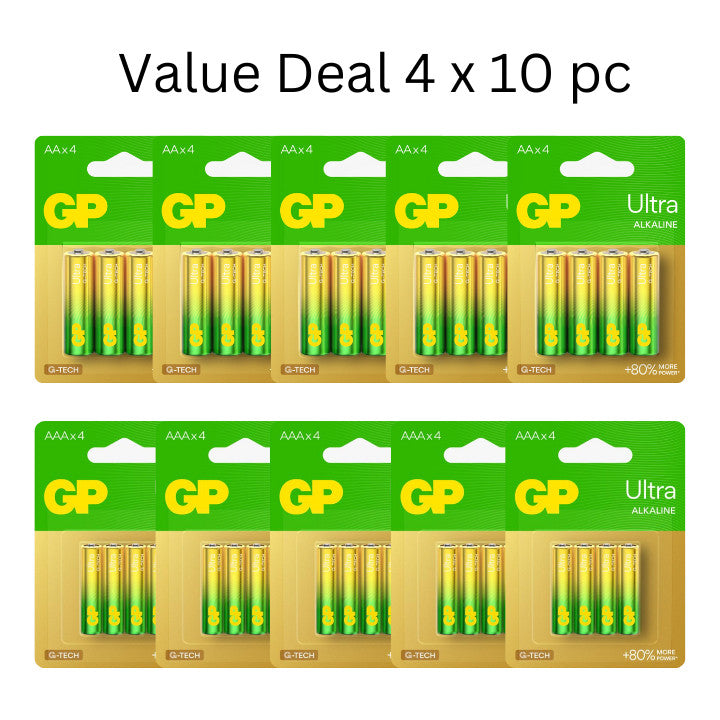[Box of 10] GP Ultra Alkaline Batteries AA/AAA - Pack of 4 (New G-Tech with 80% More Power!)