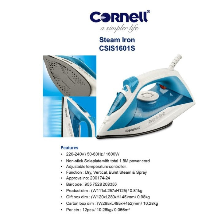 #Cornell #Steam Iron #CSIS1601S #Iron #Cornell Iron