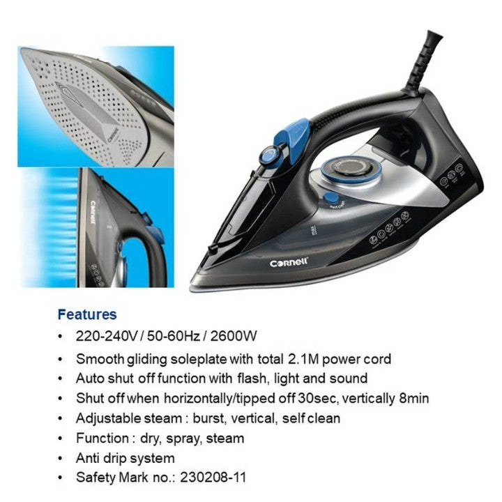Cornell 2600W Electric Steam Iron with Auto Shut Off Function CSIE26BK