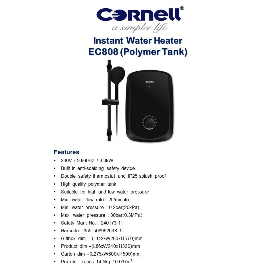 Cornell EC808 (Polymer Tank) / EC809 (Copper Tank) Instant Water Heater
