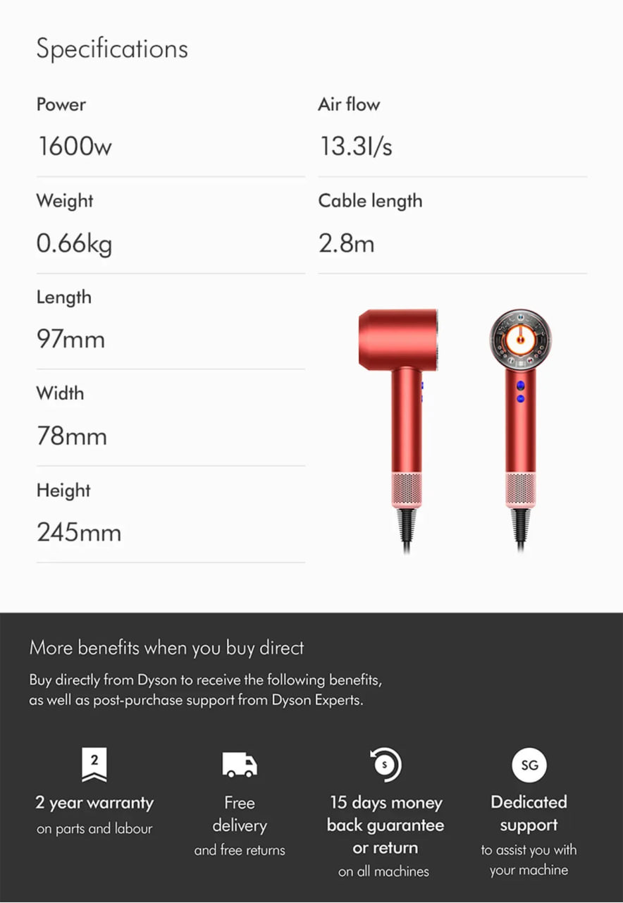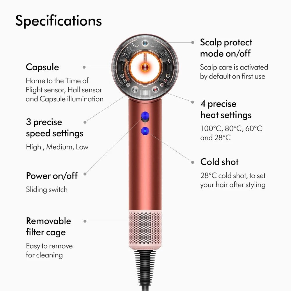 Dyson Nural™ Hair Dryer HD16 Strawberry Bronze (5 Attachments // Intelligent Dryer //2 Years Warranty)