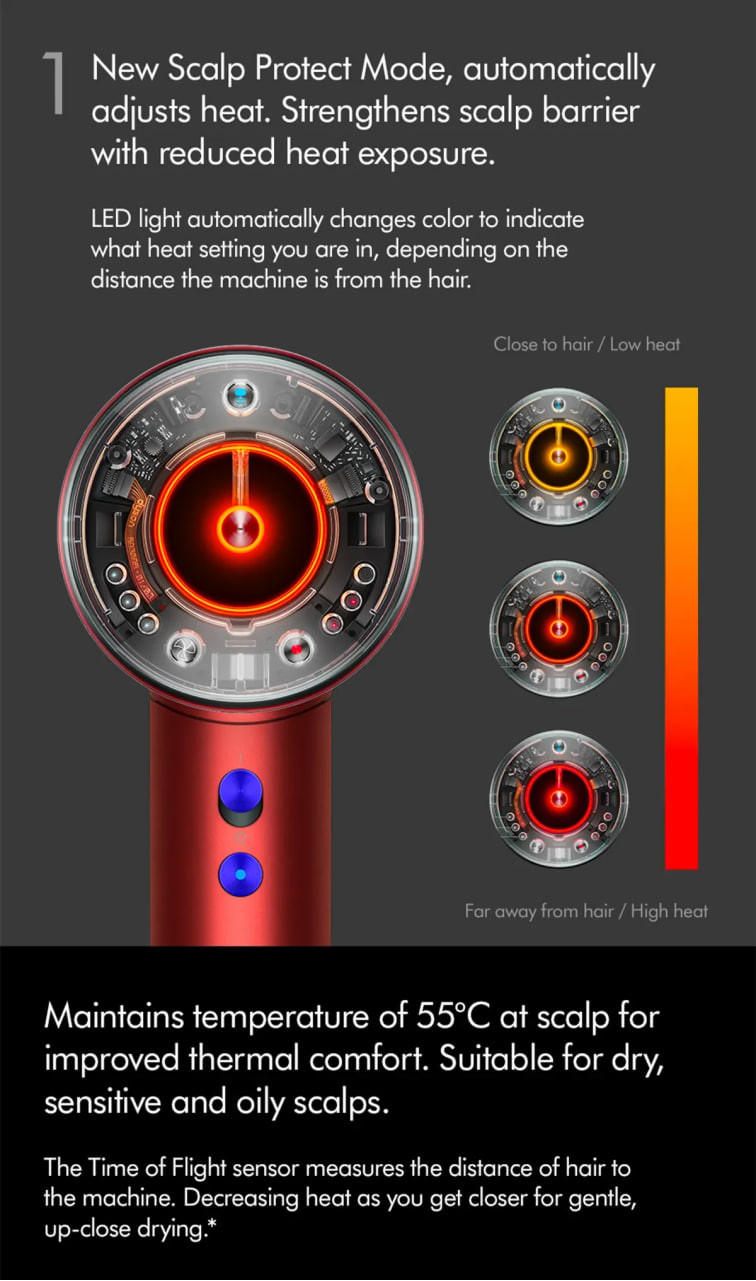 Scalp protect mode helps improve scalp moisture retention, for long-term shine.