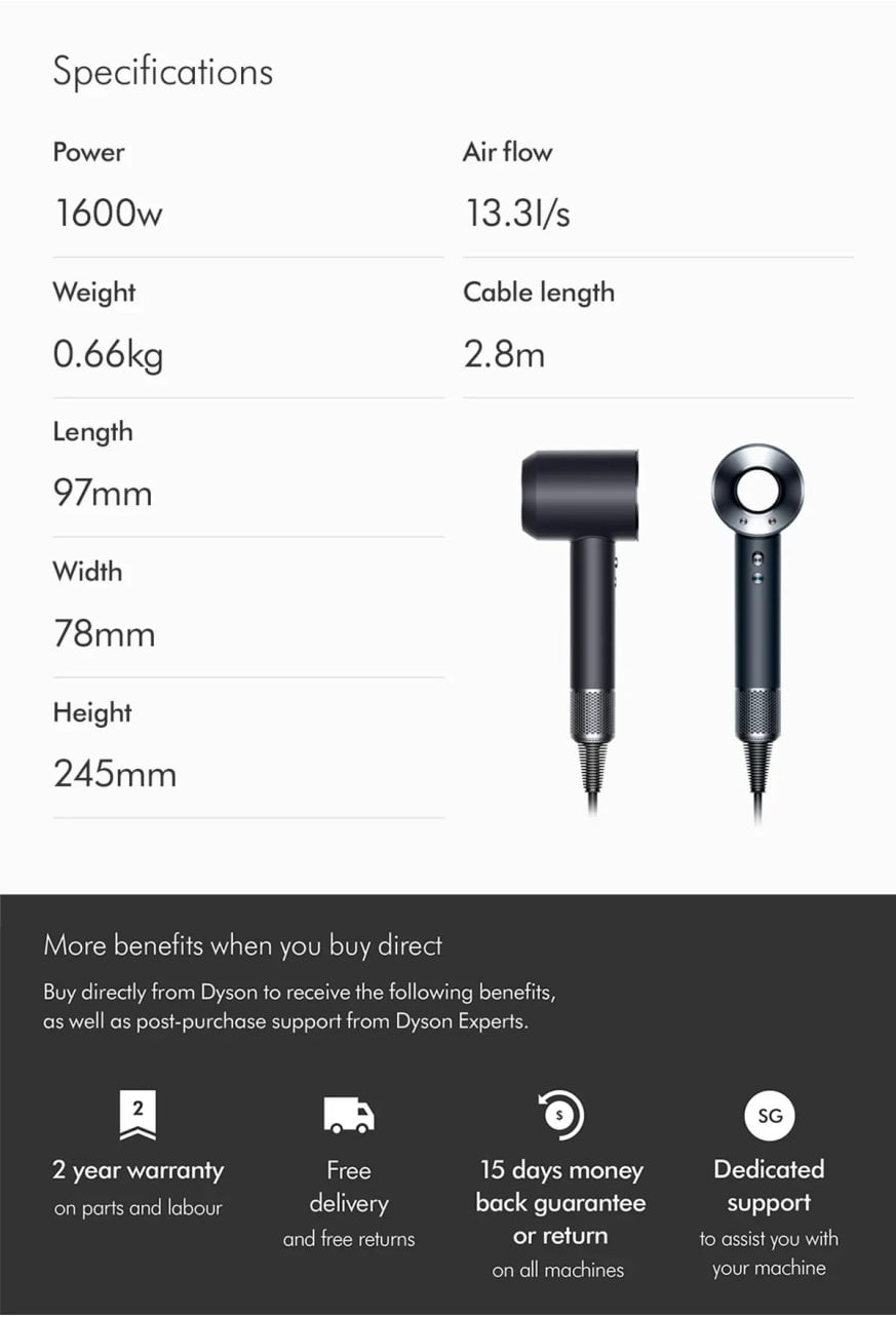 Powered by a powerful Dyson digital motor V9, spinning at up to 110,000rpm.