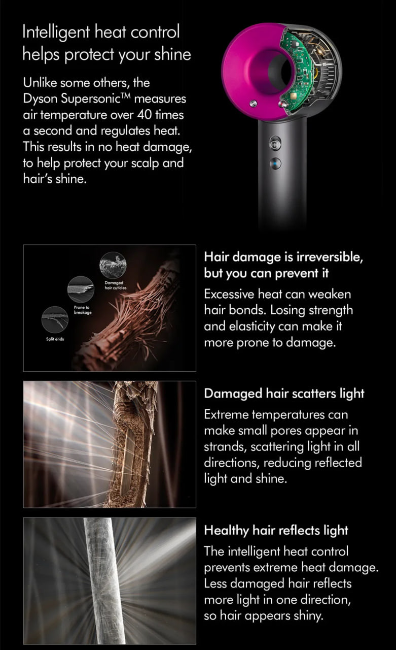 Fast drying. With no heat damage. Intelligent heat control helps protect your hair's natural shine.
