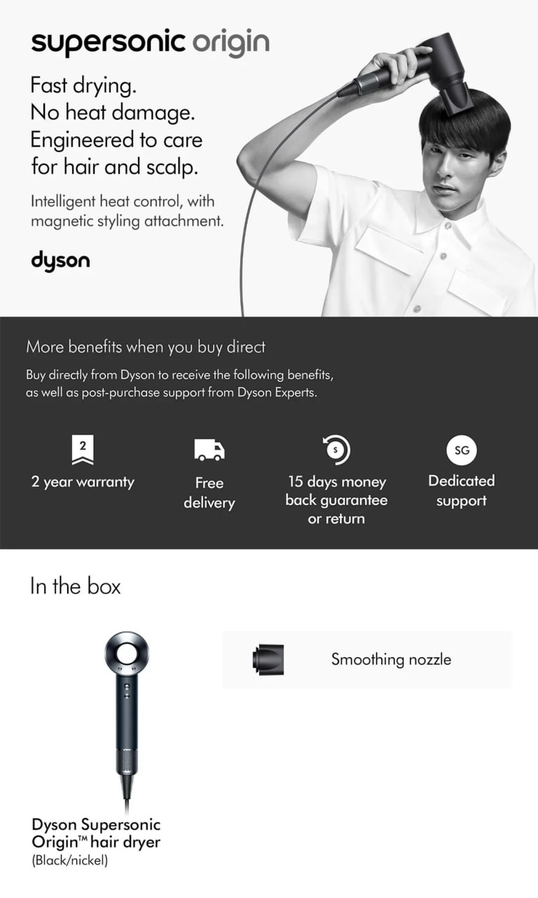 Dyson Supersonic ™ Origin Hair Dryer HD08 Lite (Intelligent Heat Control // 2 Years Warranty)
