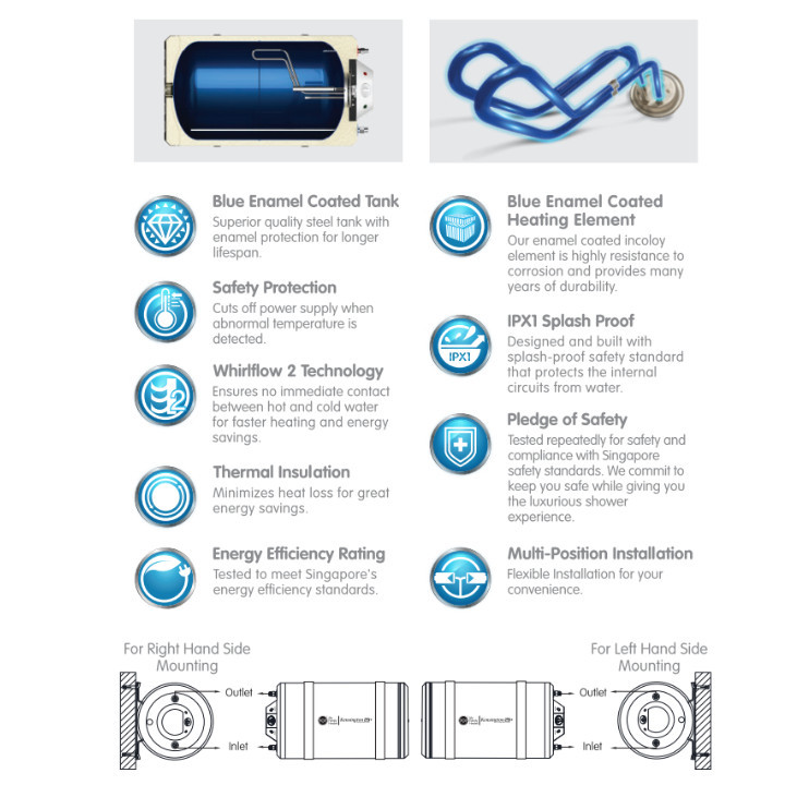 Superior quality steel tank with enamel protection for longer lifespan.