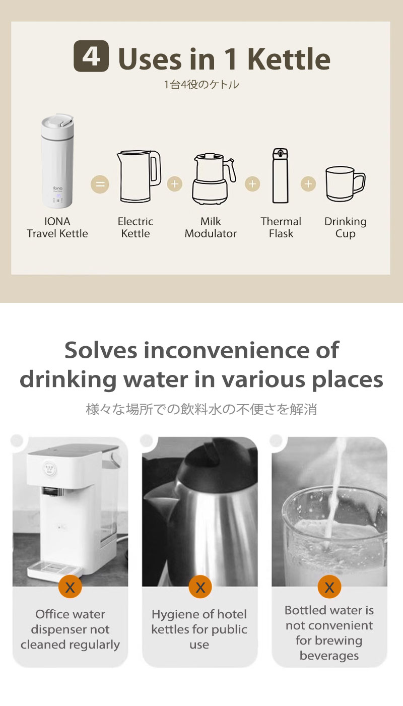 Designed for portability, it combines a kettle, thermos, and cup in one, making it perfect for travel, office, dorms, or outdoor use.