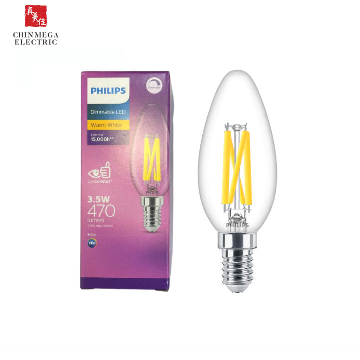 Philips Dimmable LED 3.5W E14 Light Bulb | Warm White 2700K
