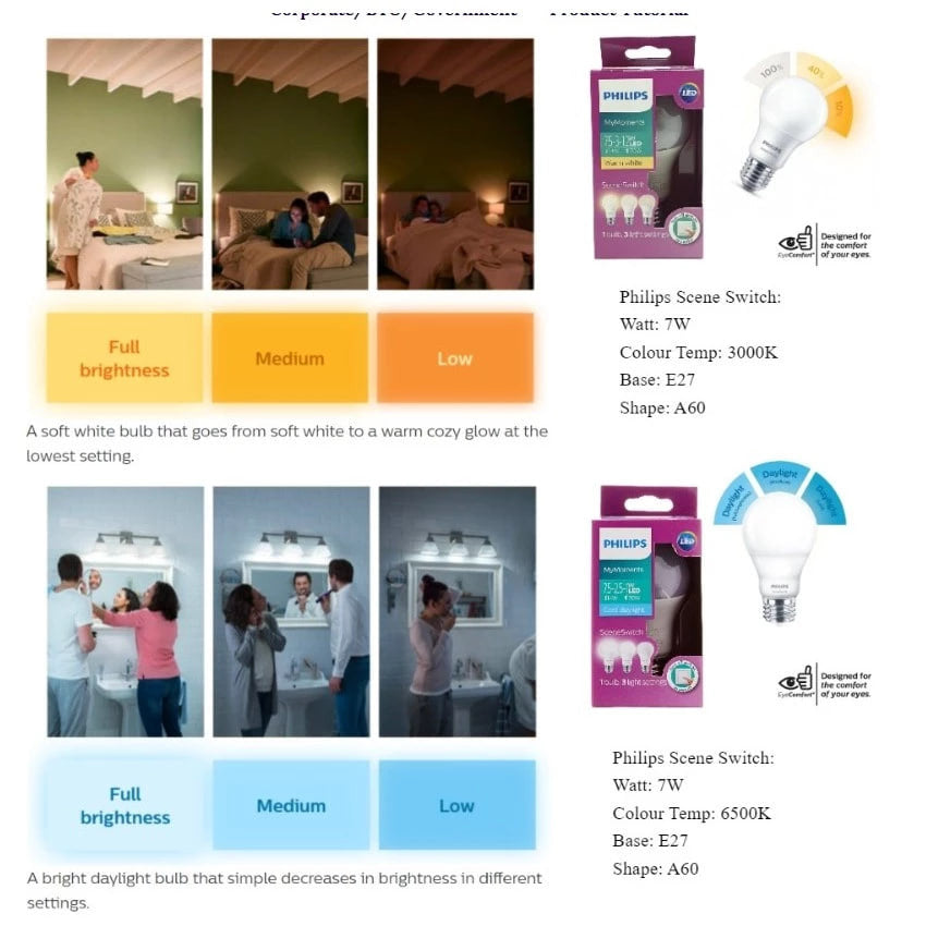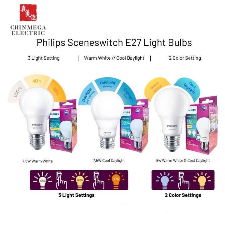 Philips LED A60 E27 Scene Switch Bulb // 2 Color in 1 Bulb & 3 Light in 1 Bulb