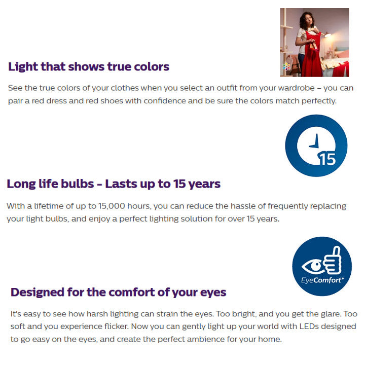State-of-the-art LED light bulb providing a general lighting solution for daily indoor activities. You will save on energy costs immediately and reduce the frequency of bulb replacements, without compromising on the quality of your lighting.