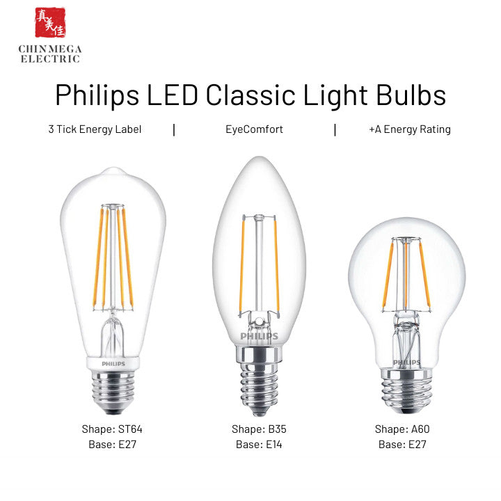 Philips LED Classic Bulbs ST64/ B35/ A60 Light Bulbs E14/ E27 Base (2w/ 4w/ 6w)