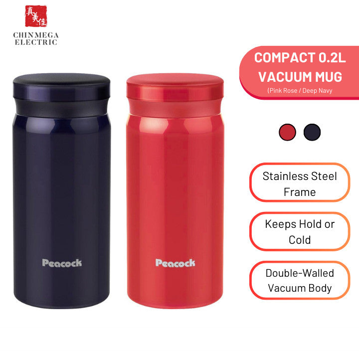 Peacock Compact 0.2L Thermal Vacuum Bottle Mug (AKB-20AK / ABK-20RS) - Red Pink / Navy Blue